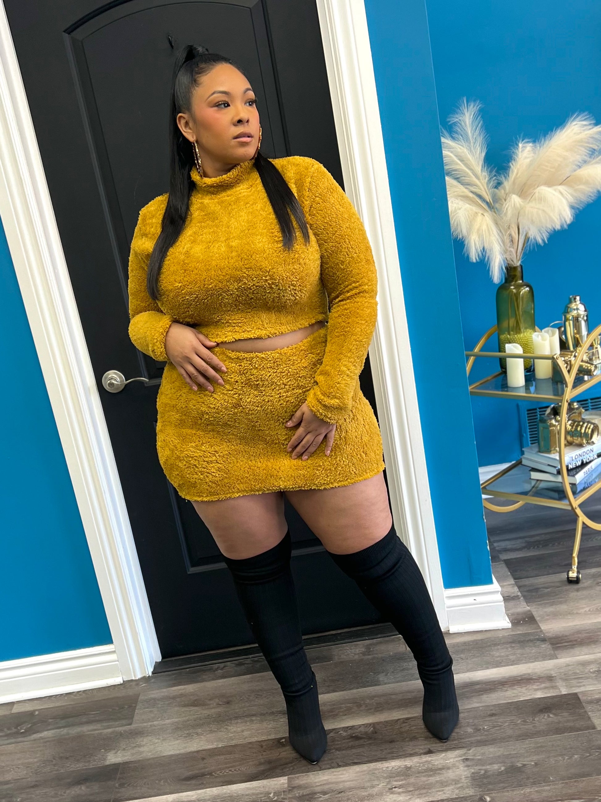 Wear This Super Sexy Plus Size Furry Crop Mini Skirt Set On A Date, To An Event Or Anywhere You Want To Look Super Cute